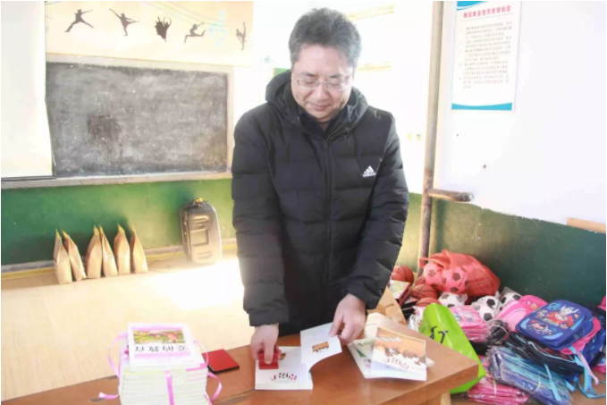 【為學生們分發(fā)學習用品】