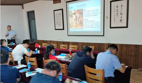2022年5月26日—5月27日,高青縣高素質(zhì)農(nóng)民專項(xiàng)培訓(xùn)養(yǎng)殖技術(shù)班在淄博市高青縣召開,同期舉行山東畜牧獸醫(yī)學(xué)會反芻動物科技委員會肉牛養(yǎng)殖技術(shù)交流會。現(xiàn)場行業(yè)專家圍繞牧場熱應(yīng)激管理、奶牛階段性管理(圍產(chǎn))、青貯制作流程、疫病防控等內(nèi)容進(jìn)行了生動、細(xì)致的講解,幫助養(yǎng)殖戶更好地掌握養(yǎng)殖技術(shù)。