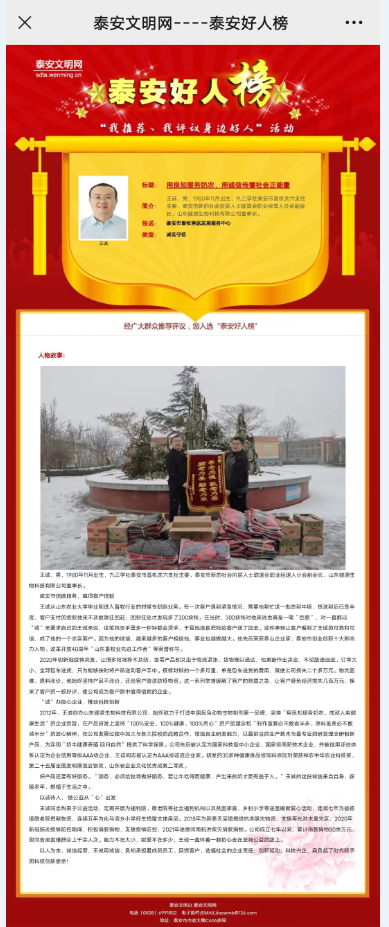 熱烈祝賀我公司王誠董事長(zhǎng)接連入選“泰安好人榜”、“山東好人”均為誠實(shí)守信類