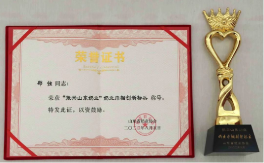山東健源生物外宣部主任邢燭榮獲“振興山東奶業(yè)”奶業(yè)巾幗創(chuàng)新標(biāo)兵稱號(hào)。