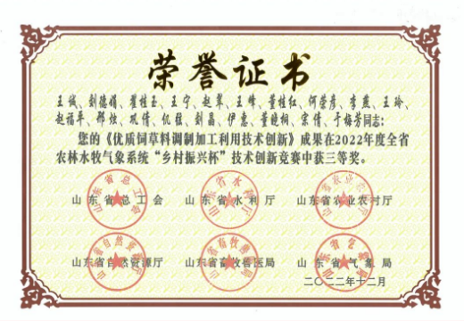 2022年度全省農(nóng)林水牧氣象系統(tǒng)“鄉(xiāng)村振興杯”技術(shù)創(chuàng)新競(jìng)賽三等獎(jiǎng)