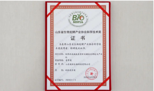 山東省生物發(fā)酵產(chǎn)業(yè)協(xié)會(huì)科學(xué)技術(shù)獎(jiǎng)科技進(jìn)步獎(jiǎng)一等獎(jiǎng)