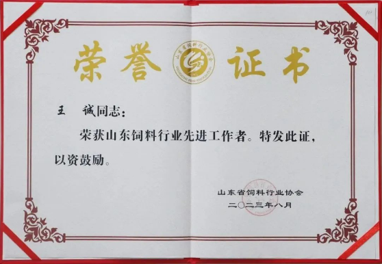 山東健源生物董事長(zhǎng)王誠(chéng)榮獲山東飼料行業(yè)先進(jìn)工作者