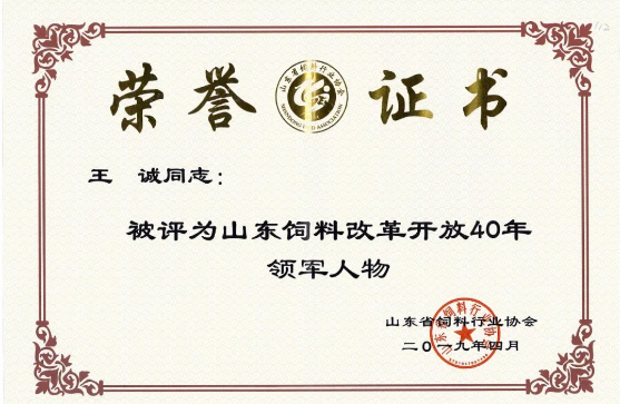 山東健源生物董事長(zhǎng)王誠(chéng)榮獲山東飼料改革開放40年領(lǐng)軍人物