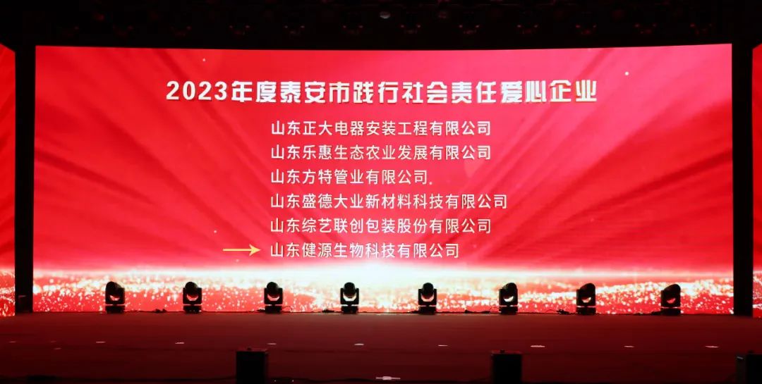 為廣泛踐行社會主義核心價值觀,弘揚高尚道德風尚,樹立勇于擔當、無私奉獻的新時代企業(yè)形象,經(jīng)申報并認真評選,授予山東健源生物科技有限公司等24家企業(yè)(單位)為“泰安市踐行社會責任愛心企業(yè)”稱號。