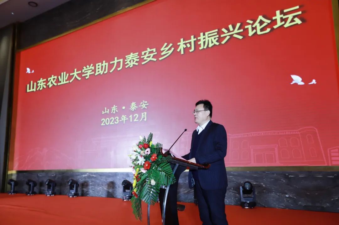 2023年12月31日,山東農(nóng)業(yè)大學(xué)助力泰安鄉(xiāng)村振興論壇暨山東農(nóng)業(yè)大學(xué)校友會泰安聯(lián)絡(luò)處理事會換屆大會在泰安舉行。泰安市人大常委會黨組副書記、副主任辛海明,泰安市政協(xié)副主席張步軍,山東農(nóng)業(yè)大學(xué)黨委副書記嵇景濤出席會議。山東農(nóng)業(yè)大學(xué)校友會秘書長亓愛收主持活動,山東健源生物科技有限公司董事長王誠出席會議。