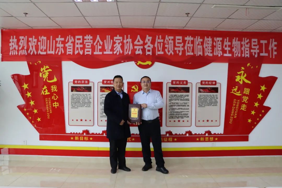 2024年1月17日,山東省民營企業(yè)家協(xié)會秘書長李吉祥,協(xié)會黨支部書記、副秘書長孫力,協(xié)會秘書處主任彭亞玲,協(xié)會秘書處副主任柳川蒞臨公司調(diào)研工作,并為健源生物頒發(fā)獎牌和證書。
