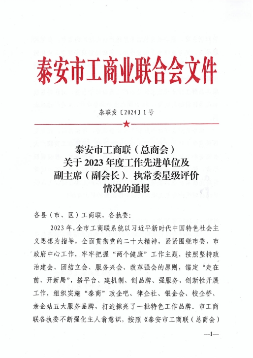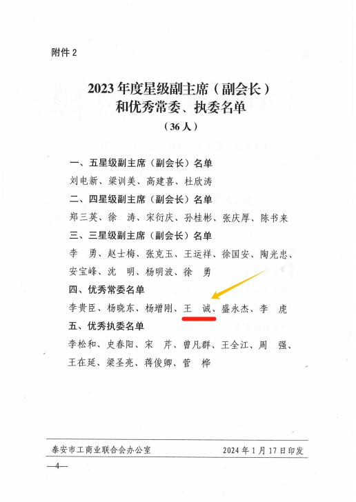 董事長王誠榮獲泰安市工商聯(lián)“優(yōu)秀常委”榮譽稱號