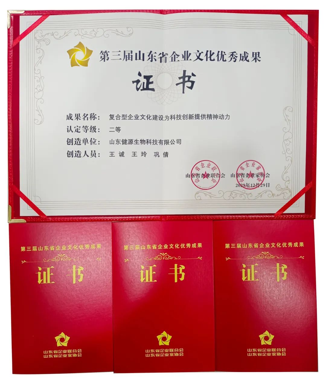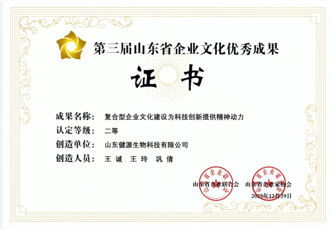 健源生物榮獲第三屆山東省企業(yè)文化優(yōu)秀成果二等獎