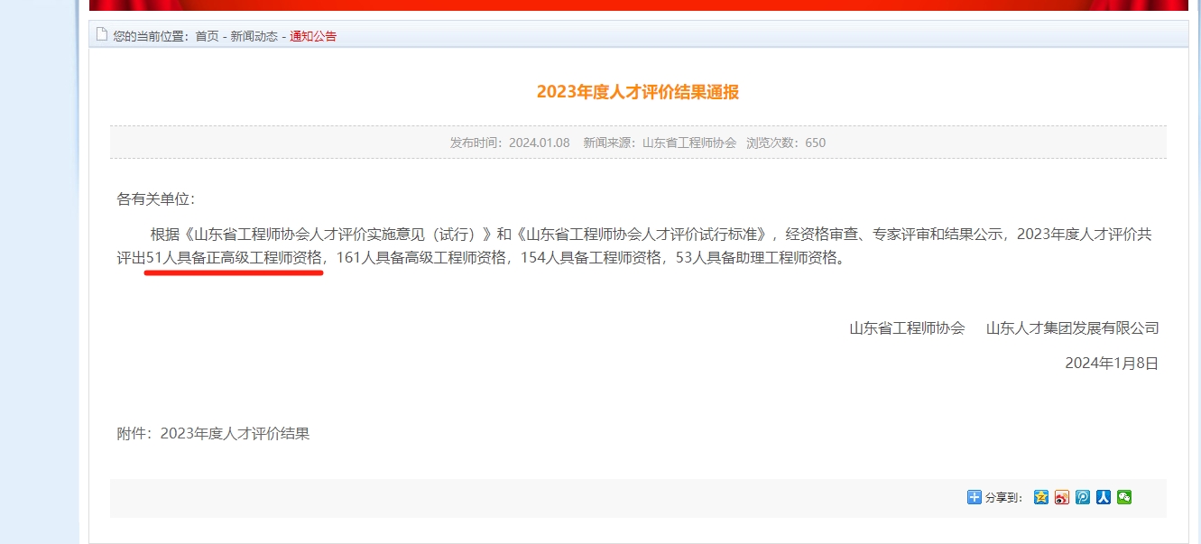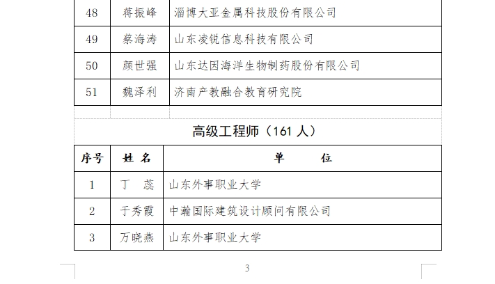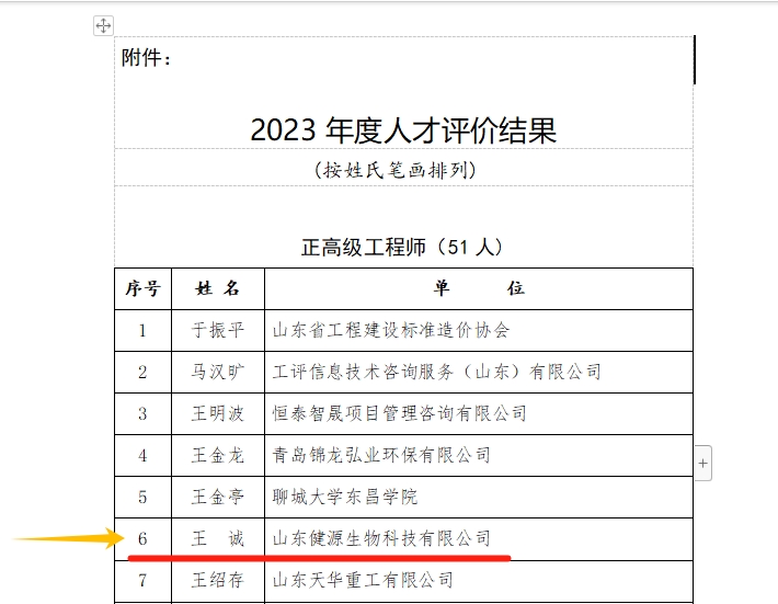根據(jù)《山東省工程師協(xié)會(huì)人才評(píng)價(jià)實(shí)施意見(試行)》和《山東省工程師協(xié)會(huì)人才評(píng)價(jià)試行標(biāo)準(zhǔn)》,經(jīng)資格審查和專家評(píng)審?fù)ㄟ^,共有51人具備正高級(jí)工程師資格、161人具備高級(jí)工程師資格,154人具備工程師資格,53人具備助理工程師資格。山東健源生物科技有限公司董事長(zhǎng)王誠(chéng)獲評(píng)正高級(jí)工程師資格。