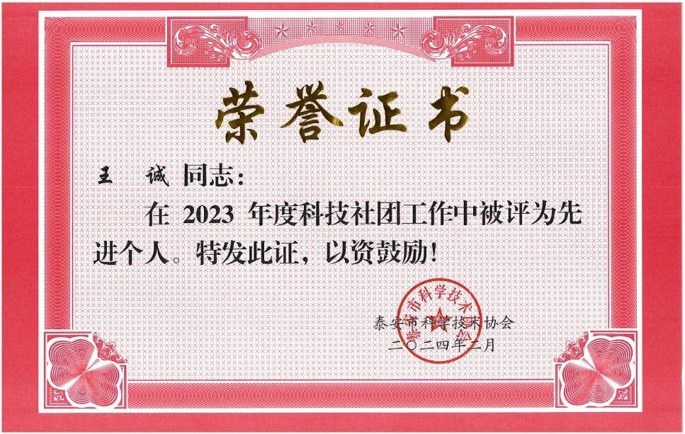 董事長王誠榮獲2023年度科技社團和高校科協(xié)工作先進個人