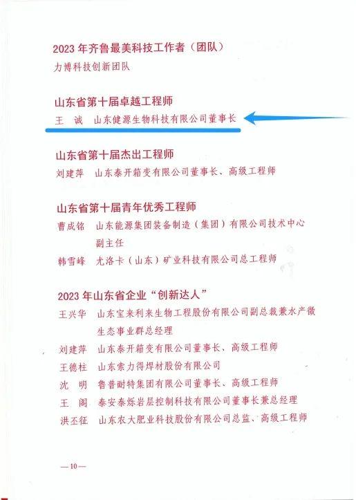 董事長王誠榮獲2023年“科技信息推廣應(yīng)用工作”先進個人,健源生物榮獲先進集體
