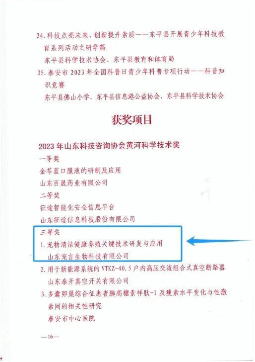 寵言生物榮獲2023年山東科技咨詢協(xié)會黃河科學(xué)技術(shù)獎三等獎