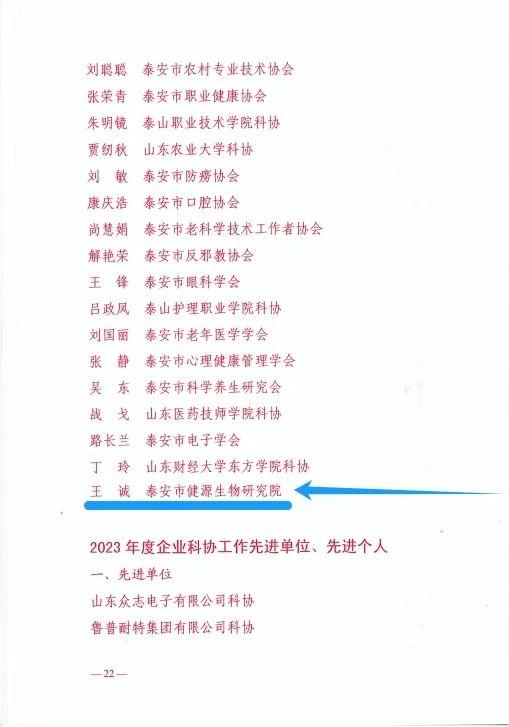董事長王誠榮獲2023年度企業(yè)科協(xié)工作先進個人,健源生物榮獲先進單位