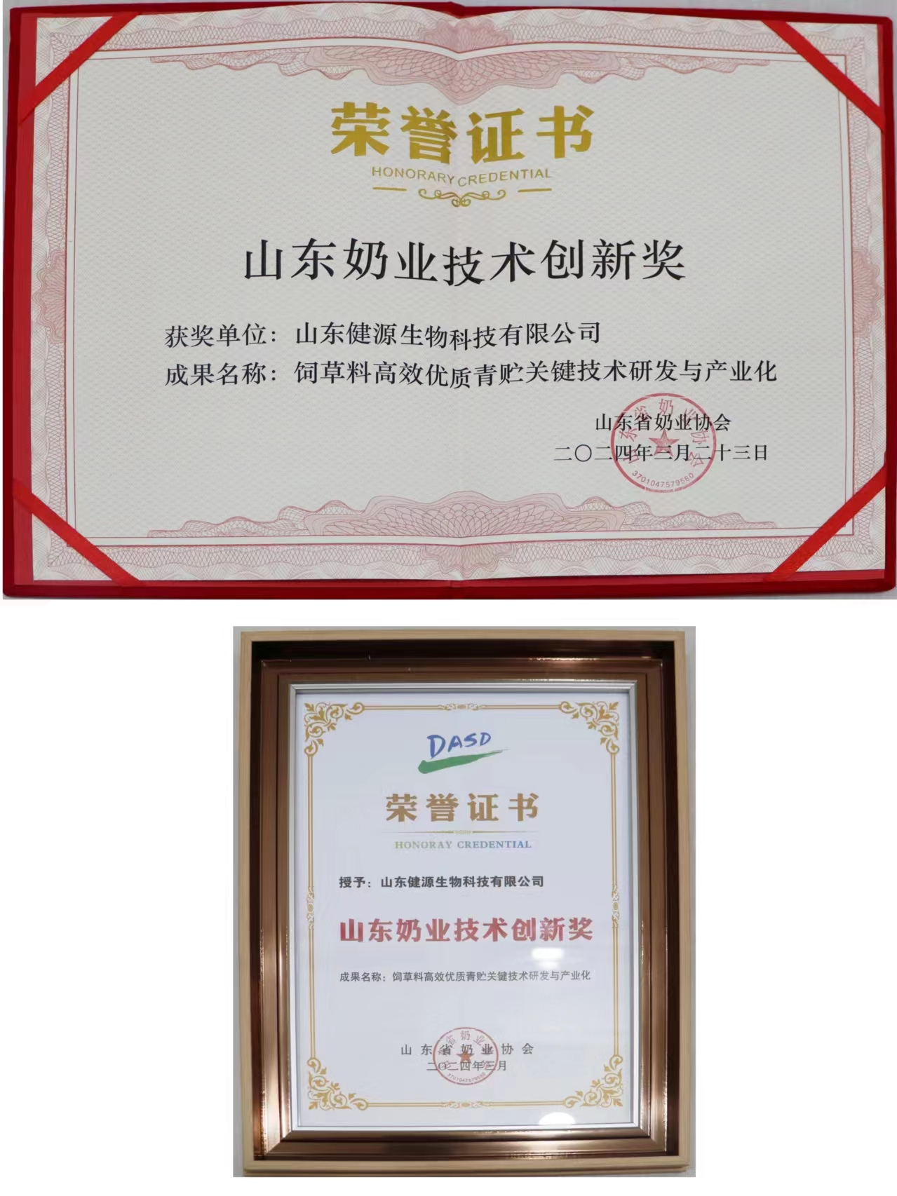 3月22日-24日,由山東省奶業(yè)協(xié)會主辦的第七屆山東現(xiàn)代奶業(yè)大會暨第十屆山東粗飼料大會在東營召開。會上,來自山東各地的行業(yè)主管部門領導、奶業(yè)專家、飼草飼料專家與諸多企業(yè)家代表300多人齊聚一堂,以“認清形勢、開拓思路、團結奮進、創(chuàng)新發(fā)展”為主題,聚焦當前山東奶業(yè)發(fā)展面臨的困難和挑戰(zhàn),積極探索提高奶牛養(yǎng)殖生產效益,提升乳制品消費水平、助力奶業(yè)健康可持續(xù)發(fā)展的創(chuàng)新之路。山東健源生物科技有限公司受邀參加并榮獲多項榮譽。