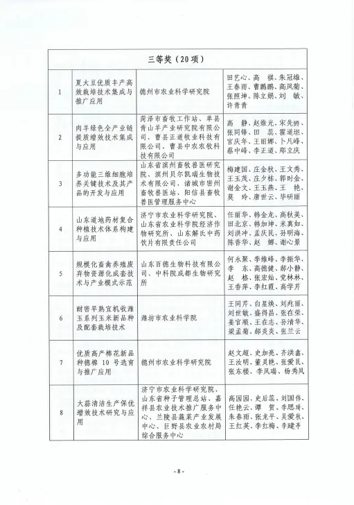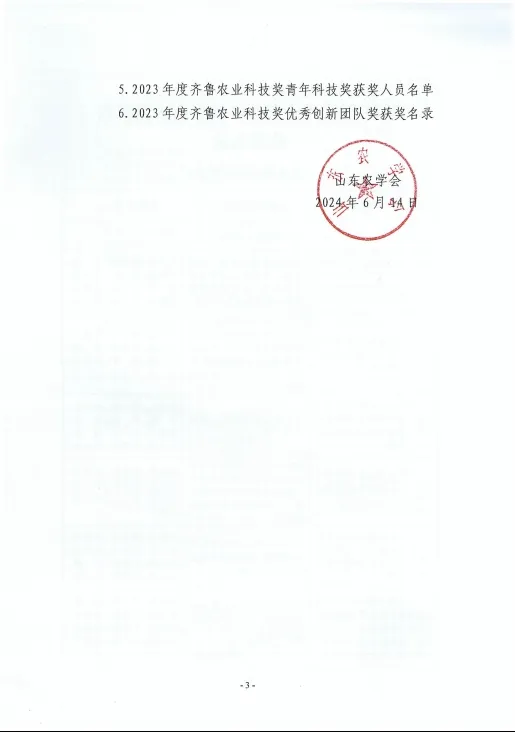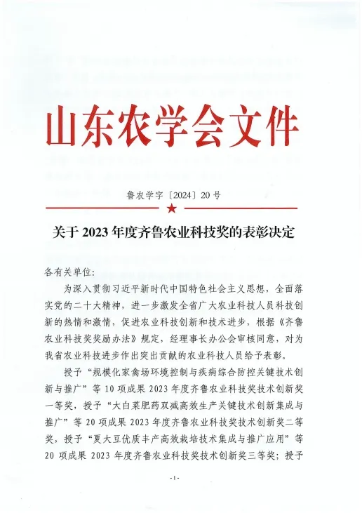 齊魯農(nóng)業(yè)科技獎是山東農(nóng)學會設(shè)立的面向全省農(nóng)業(yè)行業(yè)的綜合性科學技術(shù)獎,主要獎勵為全省農(nóng)業(yè)科學技術(shù)進步和創(chuàng)新作出突出貢獻的集體和個人,對于調(diào)動廣大農(nóng)業(yè)科技工作者的積極性和創(chuàng)造性,促進我省農(nóng)業(yè)科技創(chuàng)新,不斷提升產(chǎn)業(yè)發(fā)展水平起到了積極的推動作用。