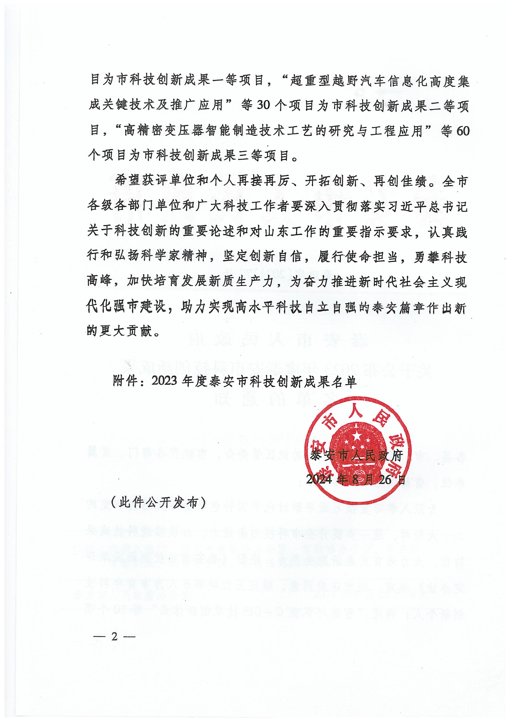 發(fā)布時(shí)間:[2024-11-1 15:54:35] 瀏覽量:3130次2024年10月31日,泰安市政府禮堂群英薈萃,全市科技大會(huì)在此盛大啟幕。市委書(shū)記、市人大常委會(huì)主任楊洪濤,省科技廳黨組書(shū)記、廳長(zhǎng)孫海生出席會(huì)議并講話,市委副書(shū)記、市長(zhǎng)李蘭祥主持,市政協(xié)主席武林中出席。