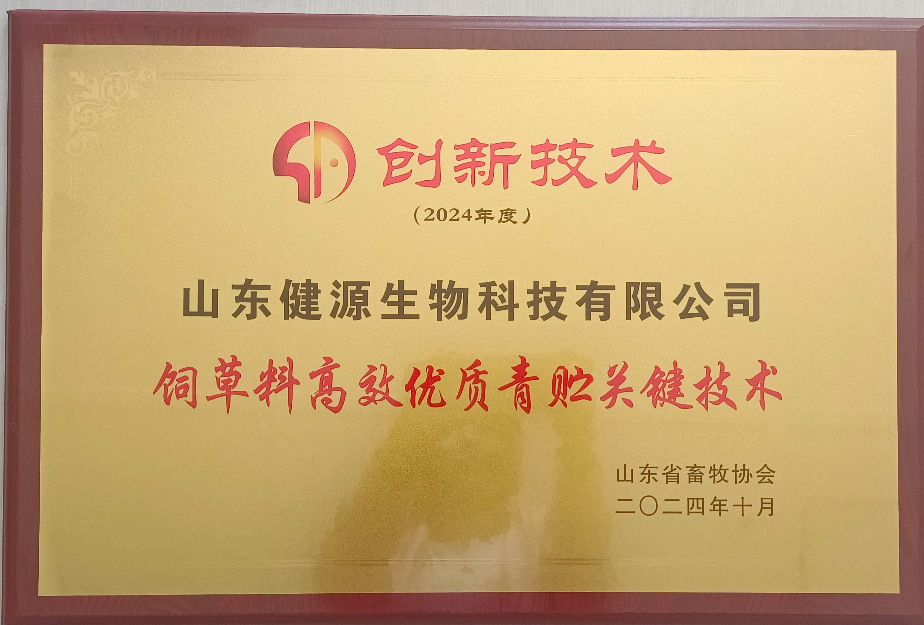 2024-10-28 熱烈祝賀健源生物榮獲2024年度山東省畜牧協(xié)會(huì)“創(chuàng)新技術(shù)”獎(jiǎng)