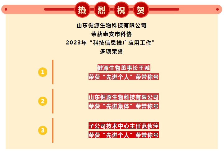 2024-1-10 健源生物榮獲泰安市科協(xié)多項榮譽