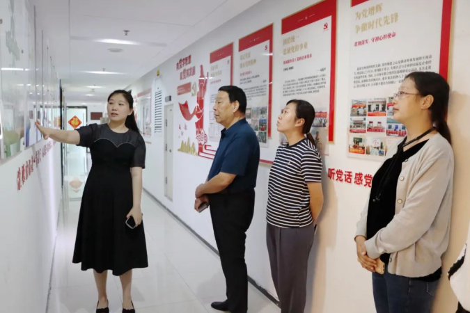 山東健源生物辦公室副主任鞏倩向領(lǐng)導(dǎo)們介紹黨建文化、健源生物企業(yè)文化.
