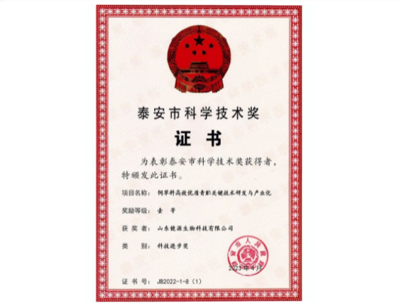 公司產(chǎn)品青貯寶、健力源、益康泰、源立凈等連續(xù)兩年被評為山東畜牧業(yè)博覽會優(yōu)質(zhì)產(chǎn)品金獎(jiǎng)并獲得了國家...