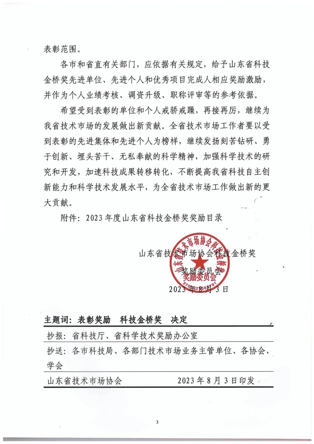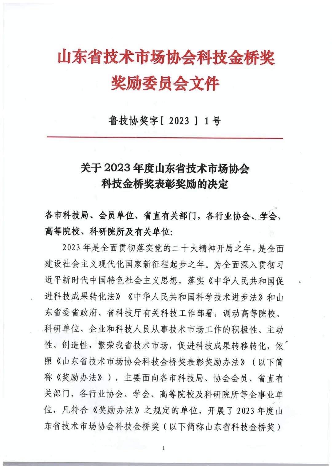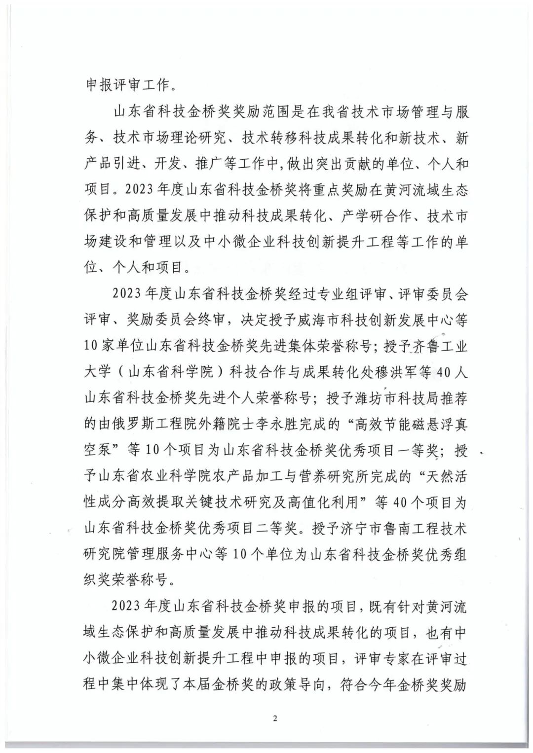 附:2023年度山東省技術(shù)市場協(xié)會科技金橋獎獎勵委員會文件及優(yōu)秀項(xiàng)目一等獎名單